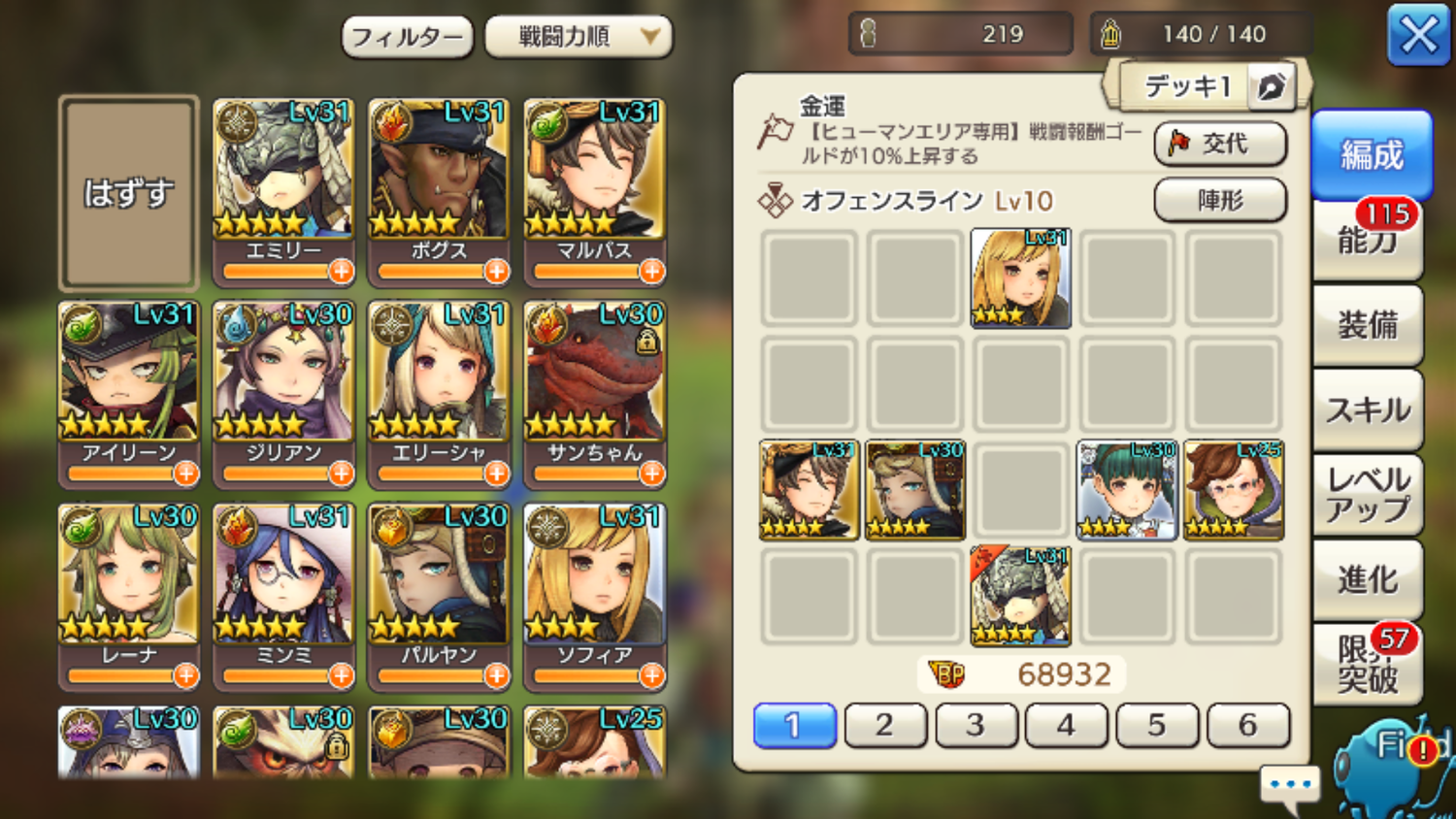 こんにちは!やっと、やっとソフィアの☆5クエストクリアしました!いろいろ試行錯誤してメンツを入れ替えたりしました。勝因はエミリーの火力とロロミュの加速ですかね?