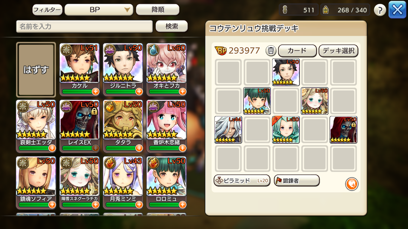 補助装備に☆4以外が入ってるのは、☆6の武器合成に失敗して被ったものと、☆6装備をゲットする前に装備していた☆5を補助枠に入れた結果です。