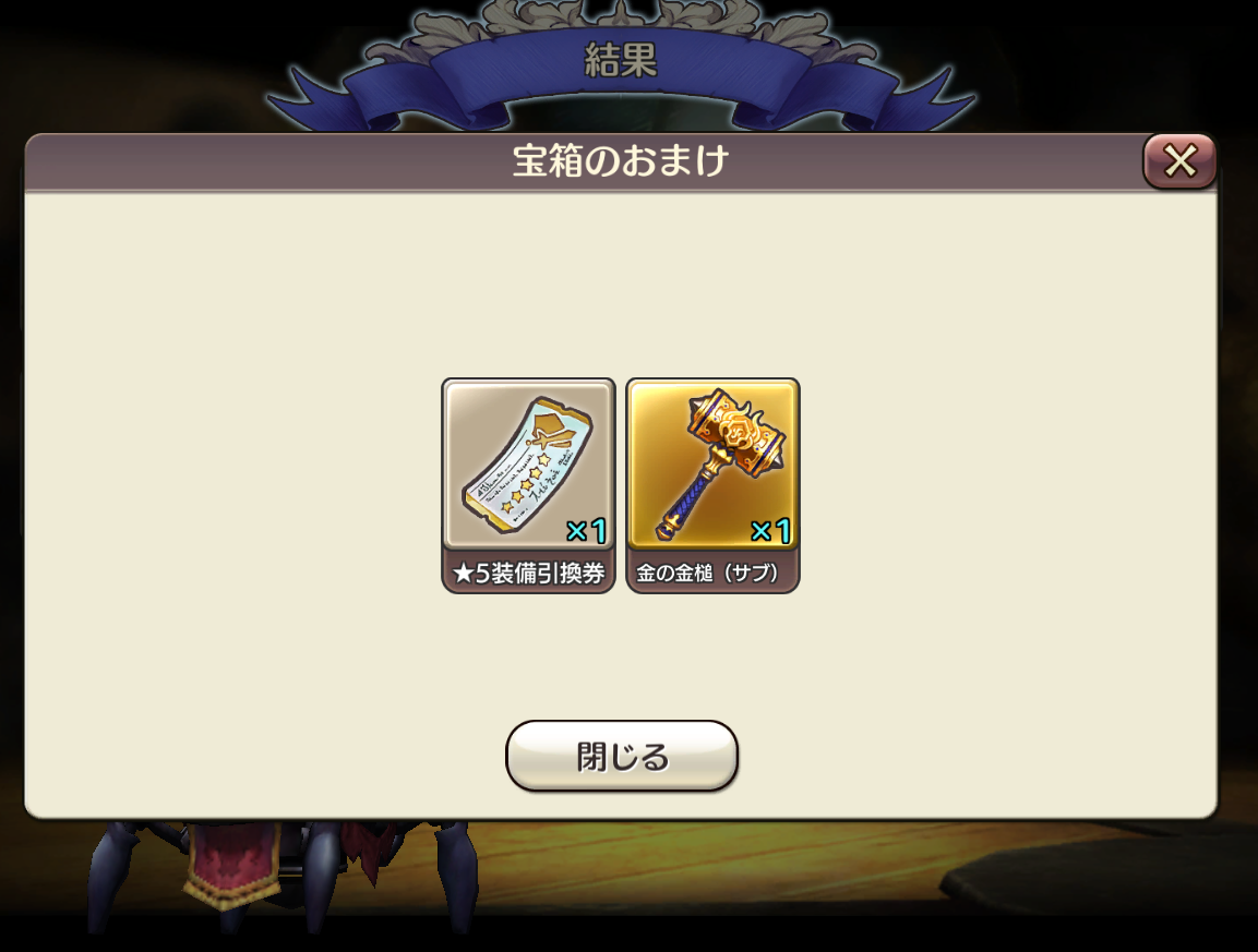 ★5装備引換券1枚/金の金槌(メイン、サブからランダムで1個出現)