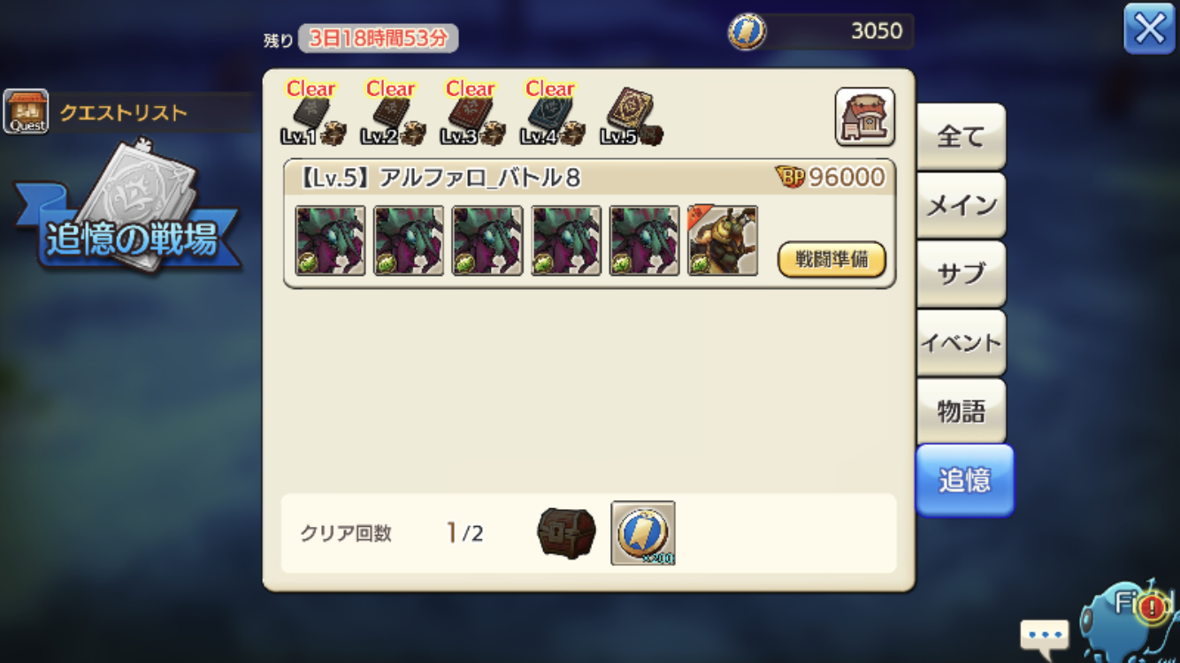 追憶LV5をクリアしようと装備やスキルなど整えてた。