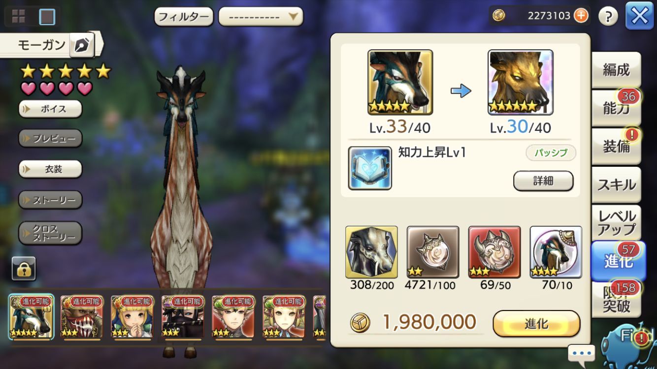 宣言通り即進化。ビーストはヒーローと違って素材が被らないから好きなやつから好きなだけ進化できるのが嬉しい。ゴールド事情だけが心配だけど… マリオンに続いて2回目で、普段ゴルダン行かないから本気で金欠になる。ゴルポン頑張ってくれ…!