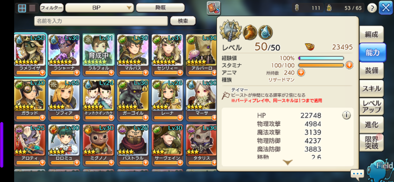 あとは遠距離から攻撃+回復+状態異常解除ができて、火属性の火力を底上げしてくれる月兎ミンミもお奨めです。