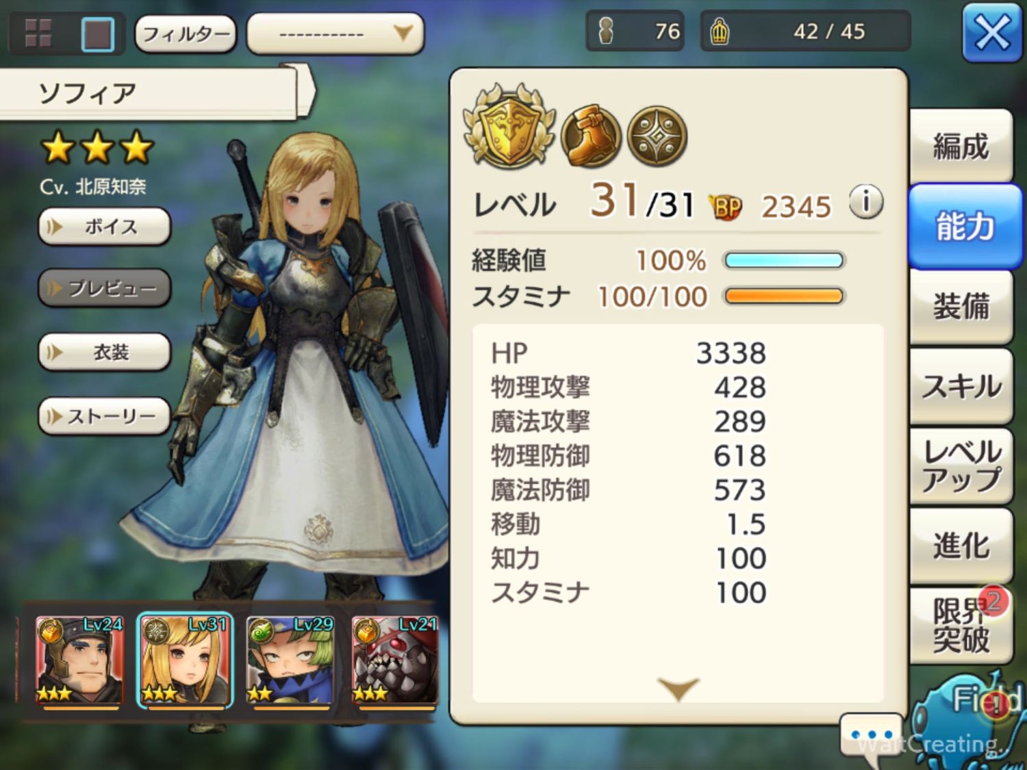 一応ソフィアの30の時と31の時のステータス貼っておきます。