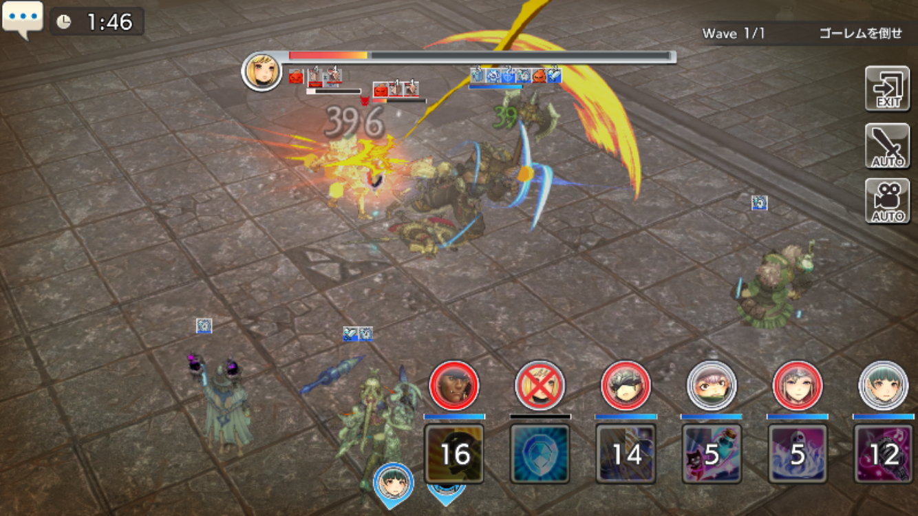 火力の範囲に3人入って立ち位置整いましたら、エミリー、エッダのタゲをまずはロンに合わせてHP半分くらいまで削ります。