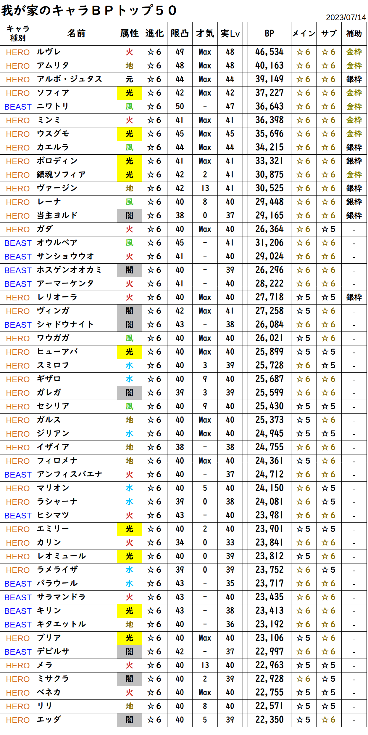 キャラ再整理と記録をたまには残しておこう(^_^;