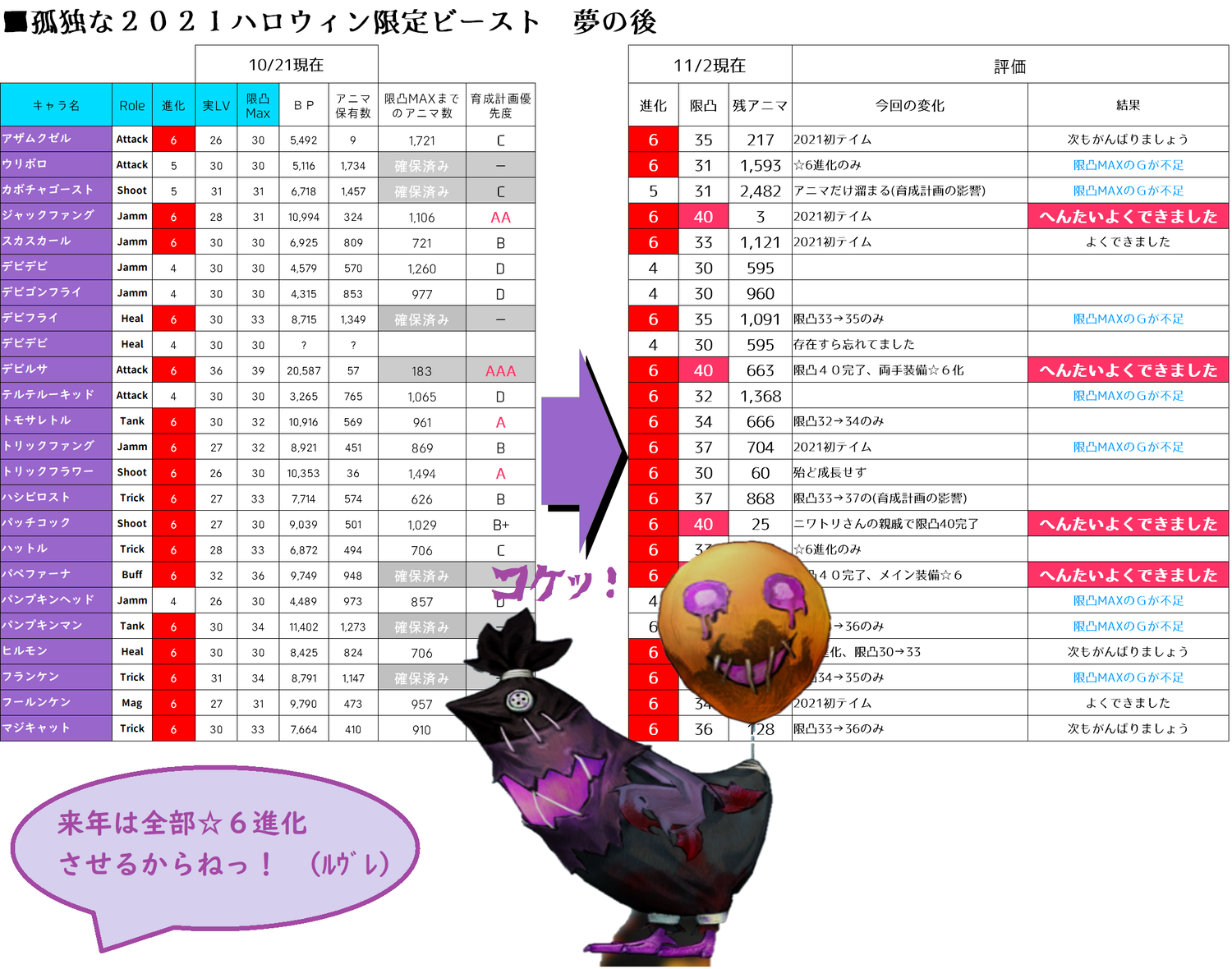 育てるだけなんだけどハロウィンは本当に装備が揃わない(T_T)
