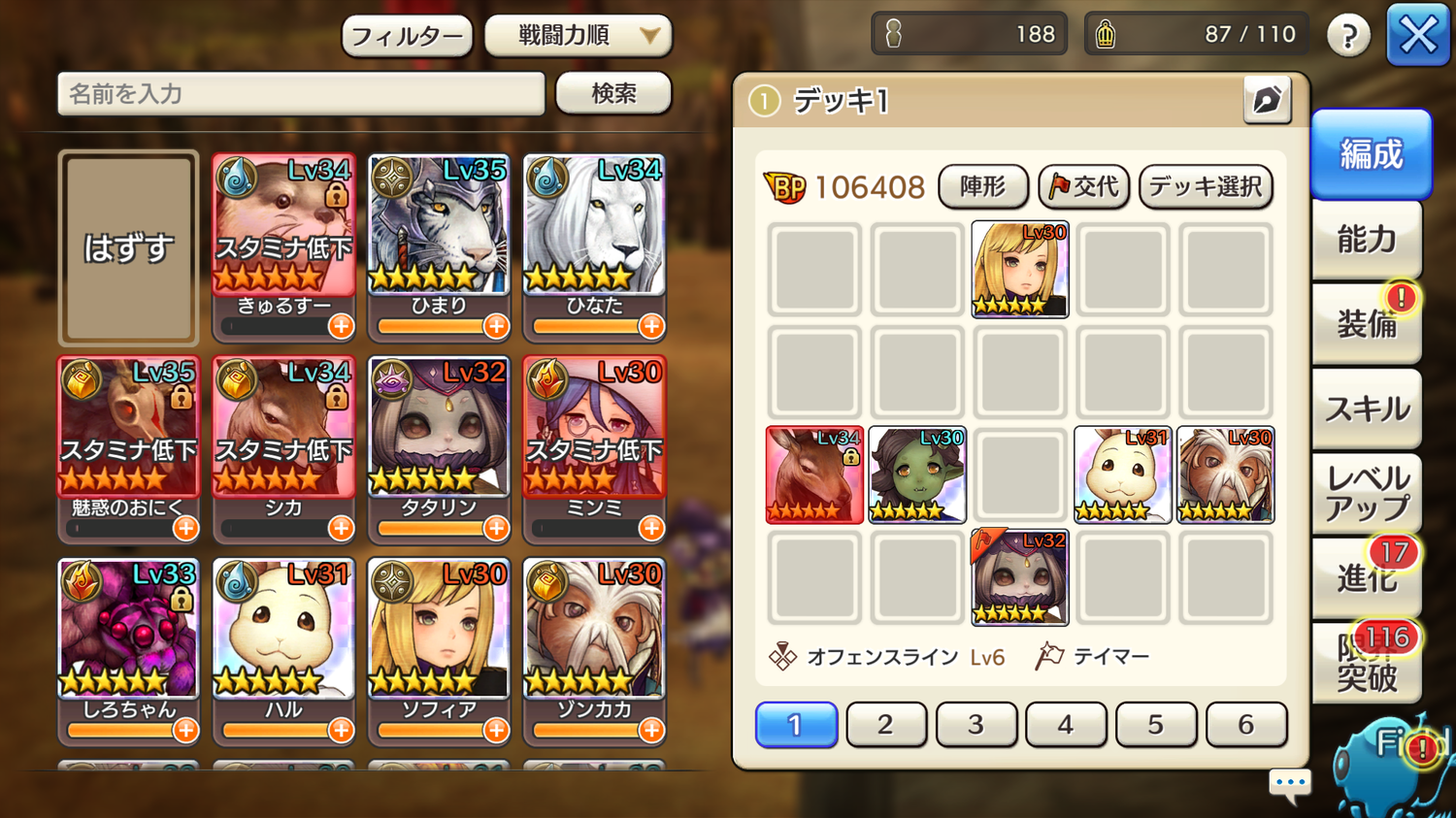 ☆6シカLv34 6/5 ダメ増34% ダメ減29%