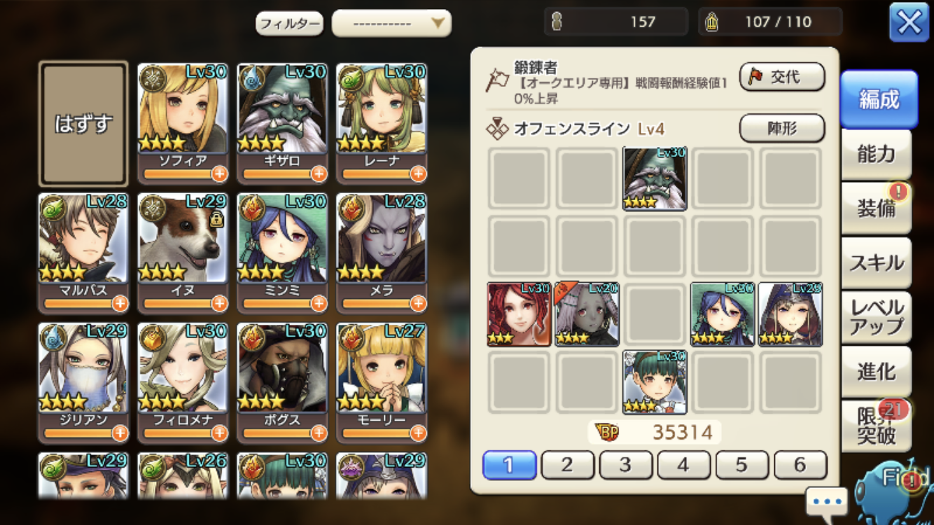 なんですが、うちで1番強くて信頼できる物理はソフィアでして、属性相性が悪い上、ガンガン倒せるほどの火力は無いんですよね……。