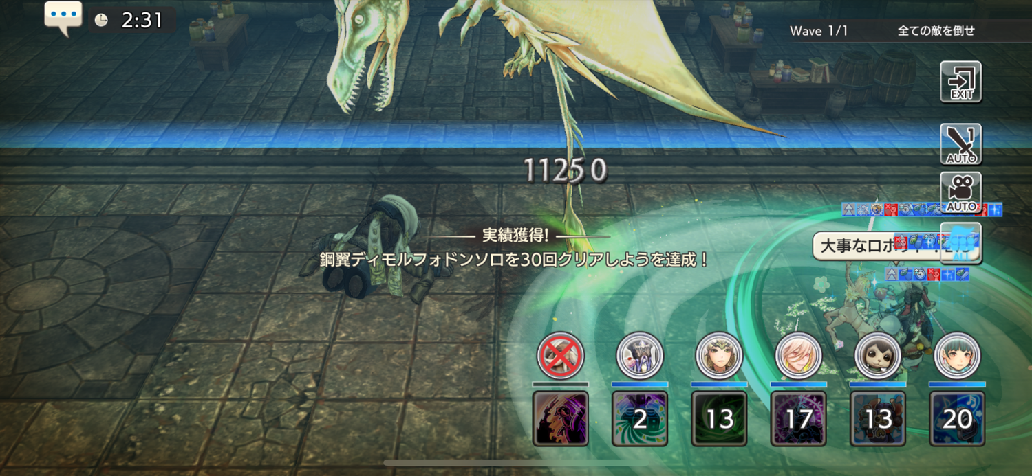 基本ね。脳筋なので簡略化しないと出来ないのですよ。ディモの様子なんて見てられない。その場の状況に柔軟に対応とか難し過ぎる。そもそもディモを選んだ理由が、かなり使えて育成価値が高い…とかよりちゃんと育成したら複雑な操作なく手間かけずに倒せそうだったからなので…しかも、亀爺5武器持たせるだけで育てなくて良い、被弾しない前提なので火力組だけの育成で良いとか素晴らしい