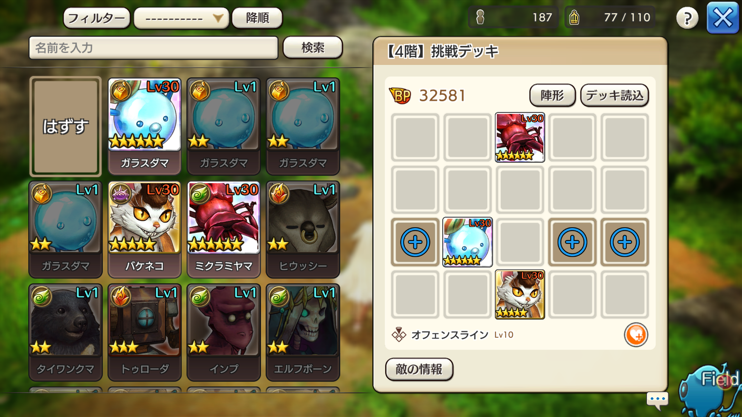 キャラ 2体☆6 1体〈バケネコ〉☆5 LV30