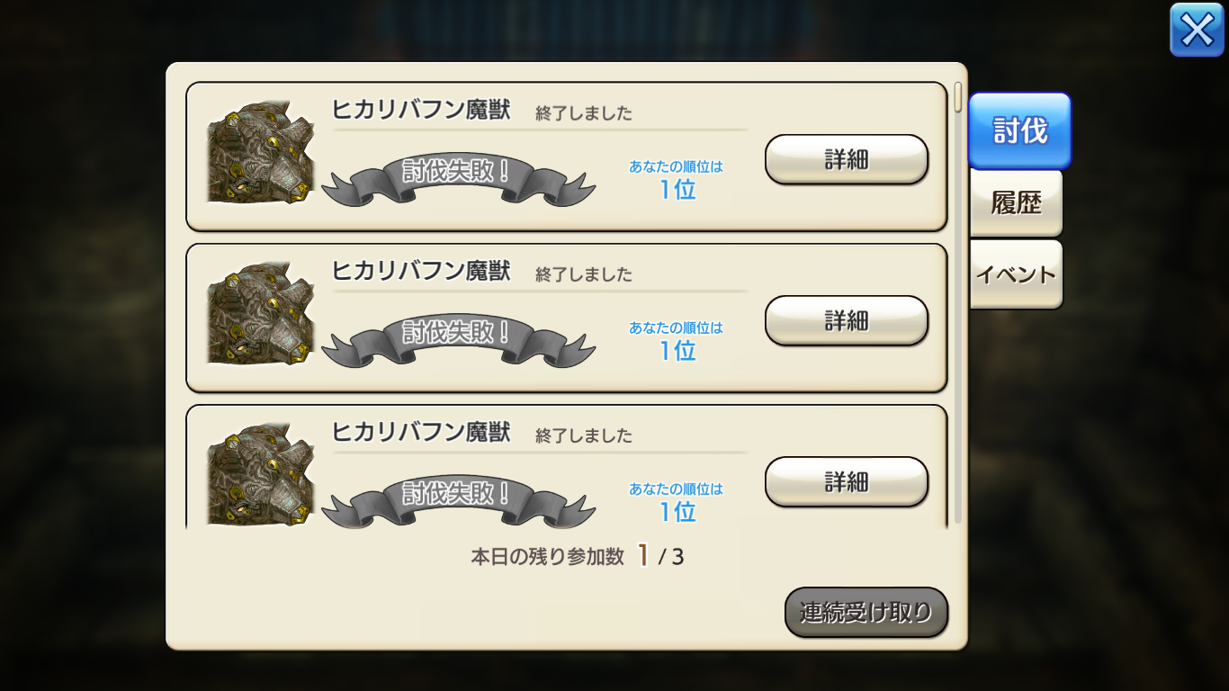 まぁ今日はそのおかげでヒカリ2の一位50回を達成して幻魔石を貰えました!