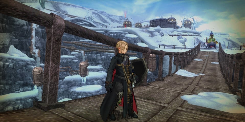 橋の向こうには、クリアした人のキャラバンに、山の上の方には未登録の赤色ライトらしきものが・・・