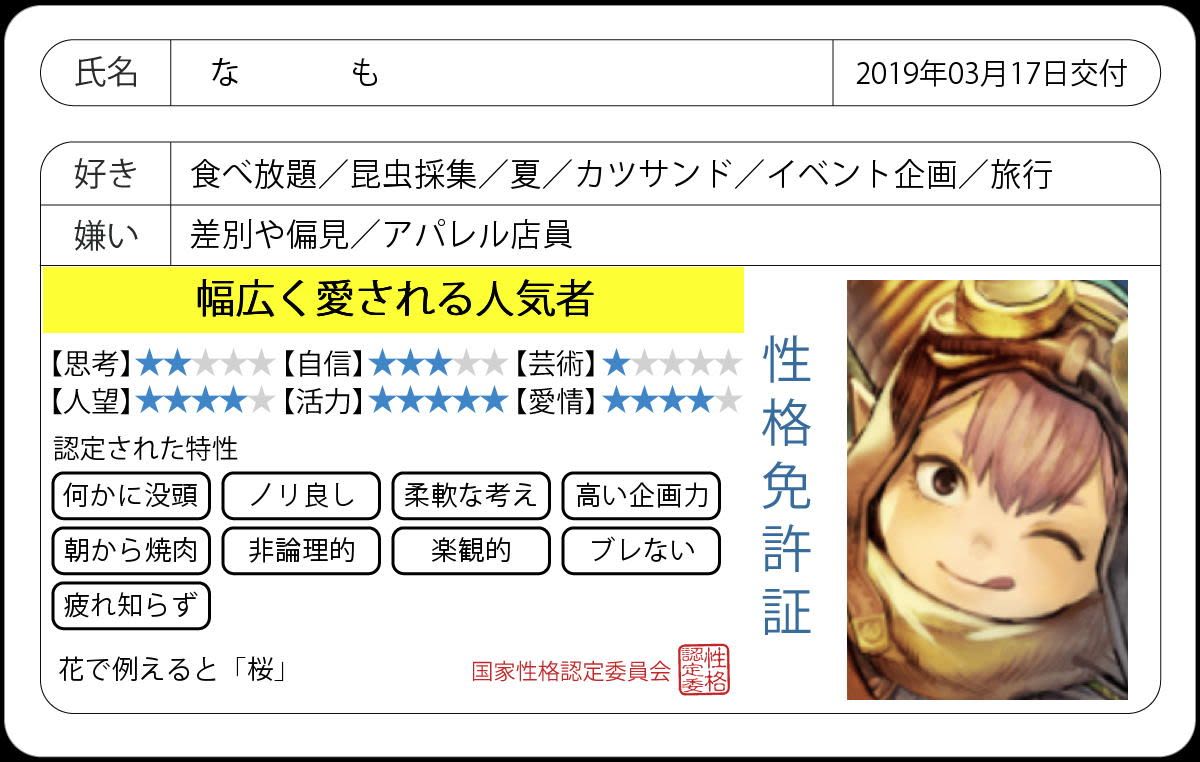 この診断見るだけで、なもさんの人柄が見えてきそうでいいですね!!