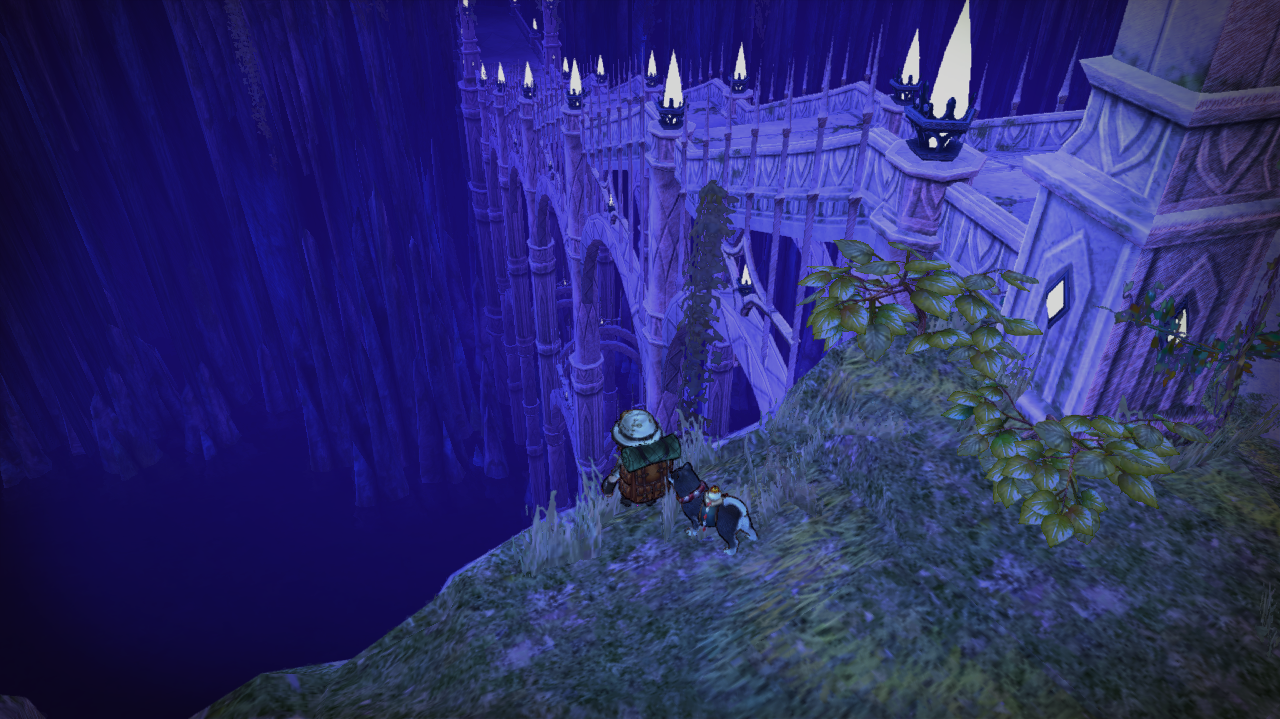 グレンモアからアヴァディーンに行く大きな石橋。底が見えない谷を渡るとスフィラを原動力とした魔法動力船が並ぶ神秘的なアヴァディーン港が見えます。