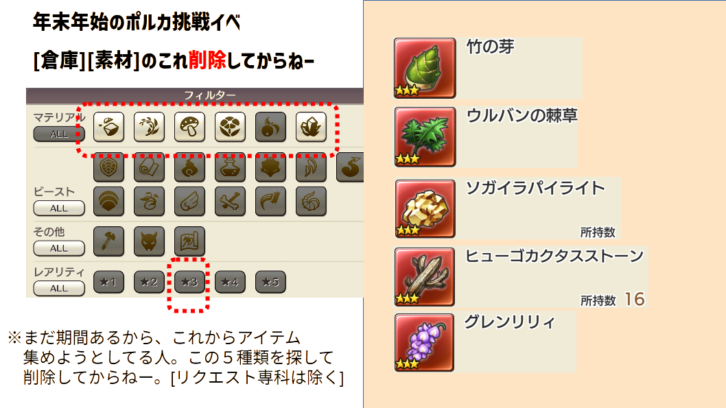 昨夜1度巡回したけど、、、忘れそうなので既存保持アイテムは削除っ