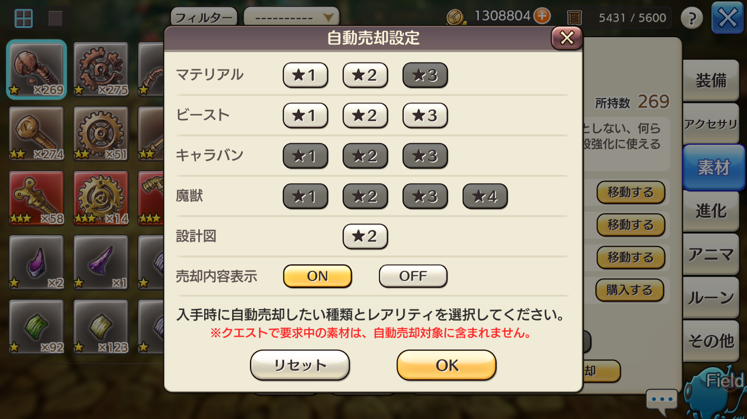 [Menu]→[倉庫]→[素材]→[自動売却]→設定してOK