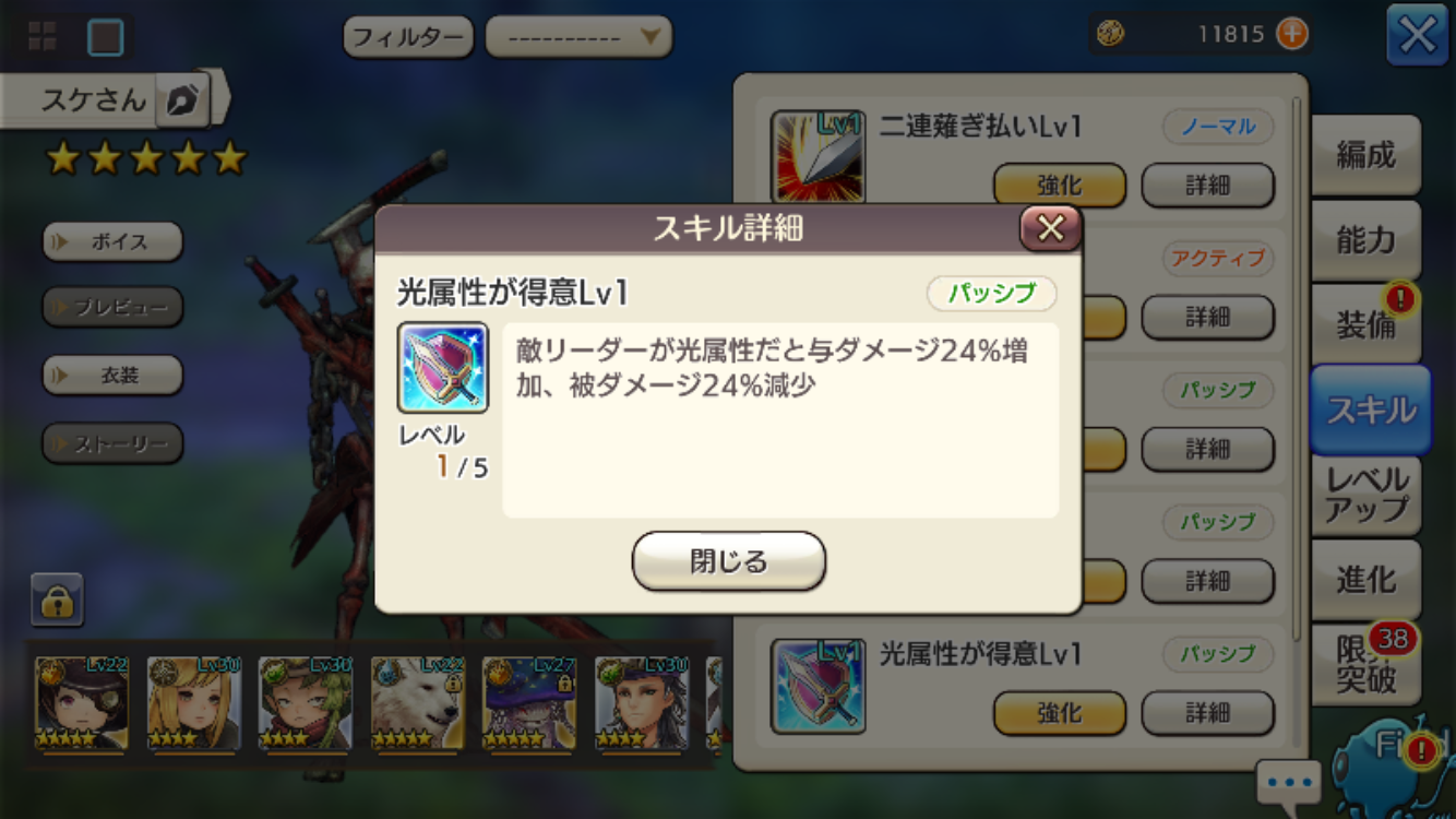 それでは、全てのキャラクターには進化で星が増える毎にスキルが追加されていきますが、星4進化で追加されるスキルに〇〇属性に強いというのがあります。