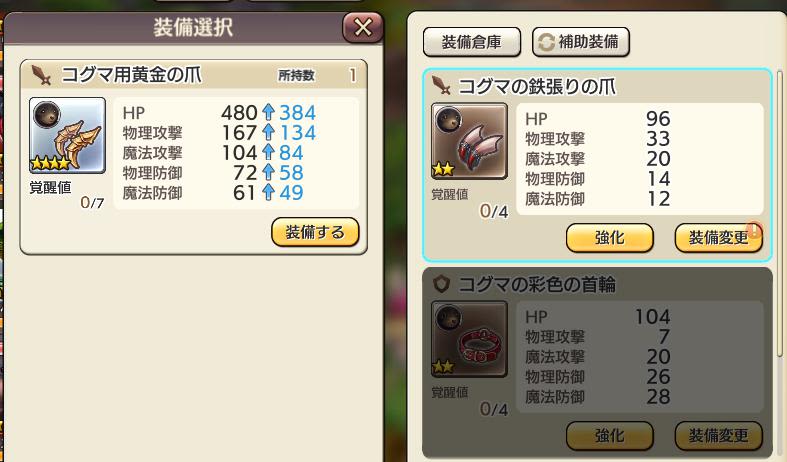 でも!!!!きのうの討滅でいただいたのは☆4のこぐま装備!まだ育ててはいないこぐまだけど、ついにすてきな装備をつけられる、