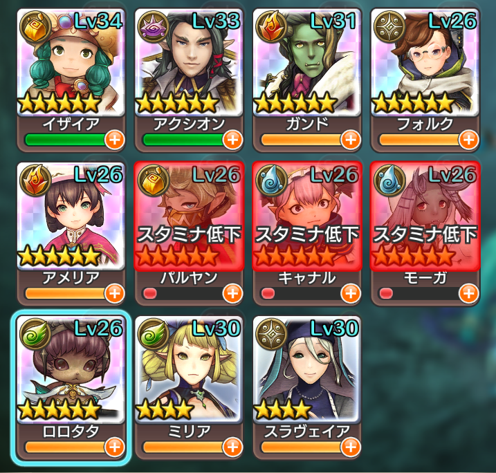 ☆5で放置してたロロタタ、フォルク、アメリアを☆6に