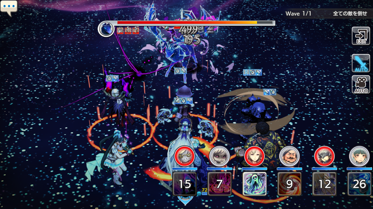 ⑥火力キャラをボスにターゲットします。