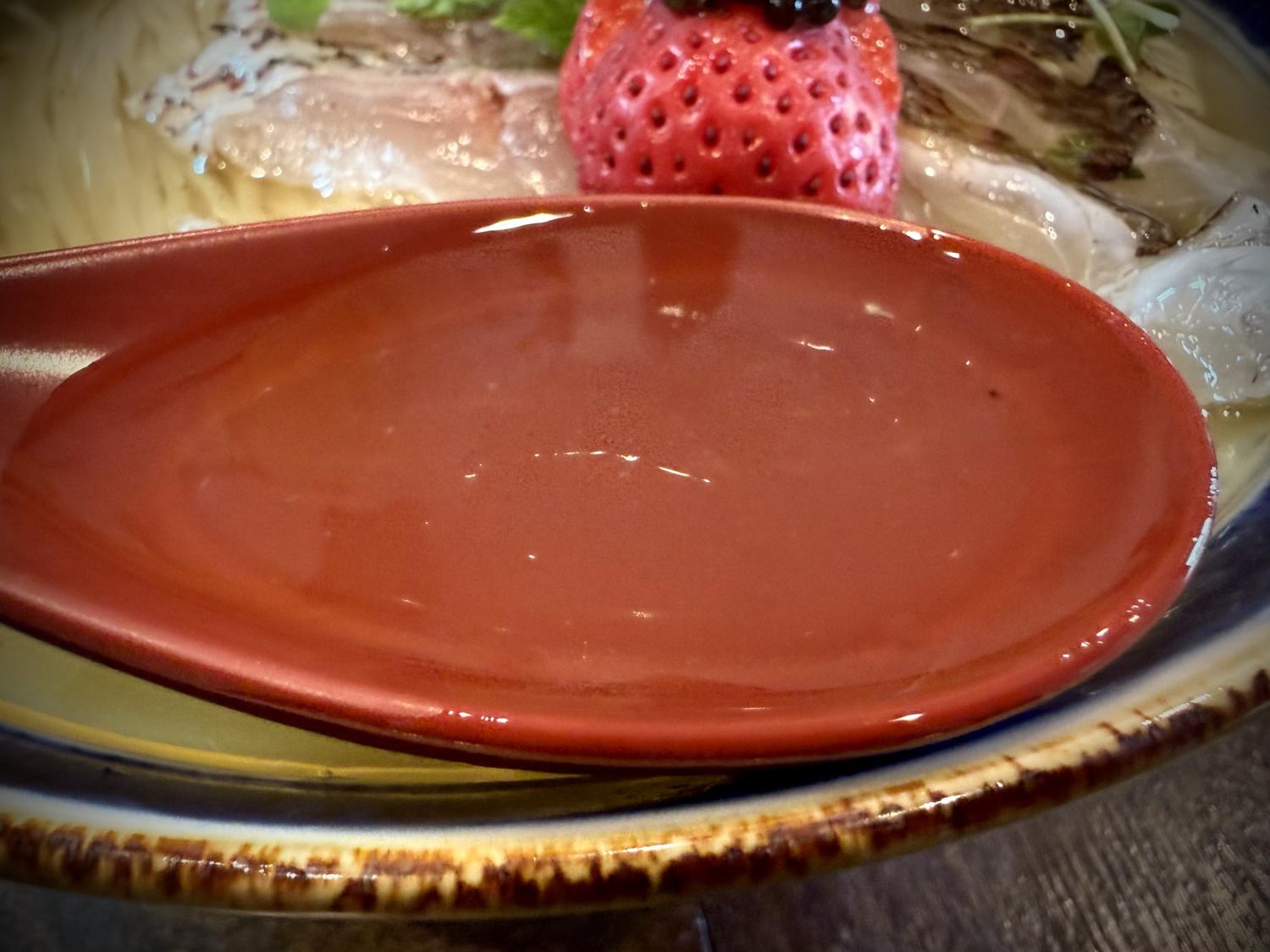 鯛の脂と煮干し油、イチゴの酸味が口の中を爽やかにwww
