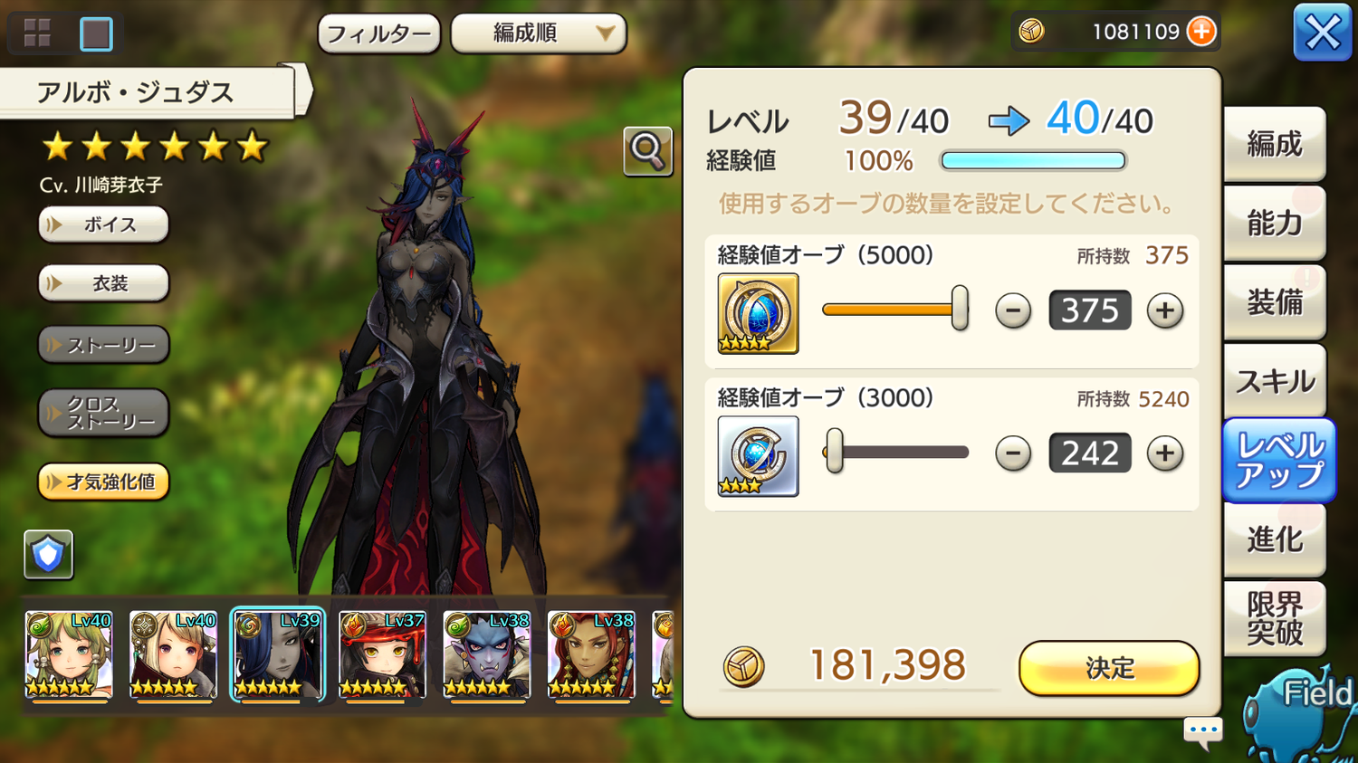 残り7%だと寝てるうちにレベルアップするのでオーブ使用
