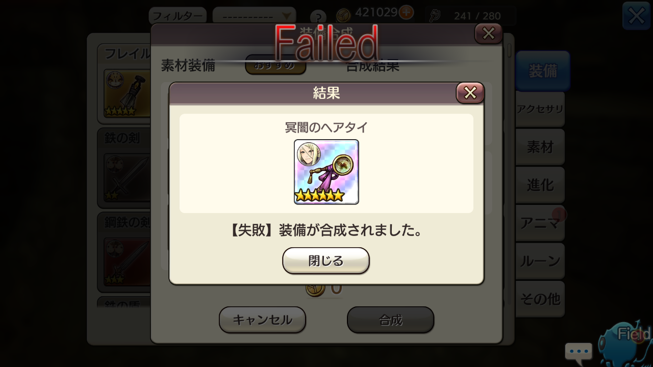 2018/11/28 07:38 公開 2回目の星6合成 結果は微妙だなぁ 雑日誌 今日 朝無料ガチャ1回回したところアンギラのサブが2本も出たのでそれを元手になけなしのサブ(キャラいないのを)生贄にしてレッツトライ!!愛しのエミリーを毎回選ぶのですが1回目はエルフのからくり執事今回はなんか日誌見てると成功例が多いので自分も来るかーーーとトライしたのですが リアルドまたダメだったーーー くぅぅリアルドって使えるのかなぁ ユウテイ リンクをコピーしました 前の旅日誌 旅日誌一覧 次の旅日誌 コメント 1 ハナ ID: fnaydxpfcxiv うわああああリアルドは私が1番ほしいやつですー!!!!リアルド指定して失敗してる…使えるもなにもちょーつよいよ!(。˃ ᵕ ˂ )ƅ私はリアルドで強くなりました(`・∀・´) 2018/11/28 08:55 2 ユウテイ ID: xtm4pr2g2h2x >> 1 マジでぇ!!アニマが足らんからほとんど使ったことないんだよねー一応使って見たんだけど動作が遅くて微妙と思ったんだけど育ててみるかぁなぁハナさん情報ありがとぉぉ( *´艸`) 2018/11/28 09:49