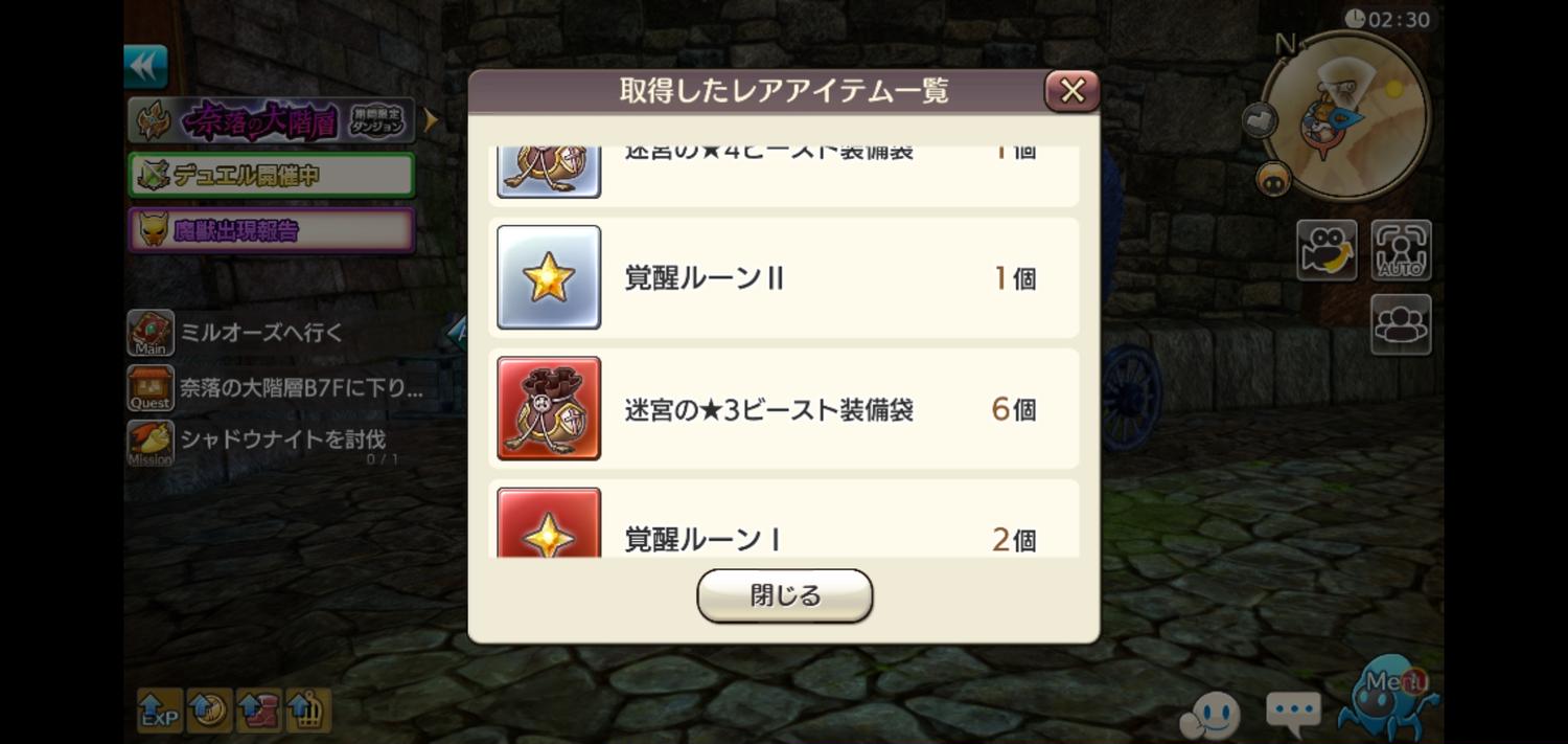3階の手前付近で自動巡回し、ひたすら報酬集めてます。経験値10%アップをリーダーにして、キャラのレベル上げもかねます。