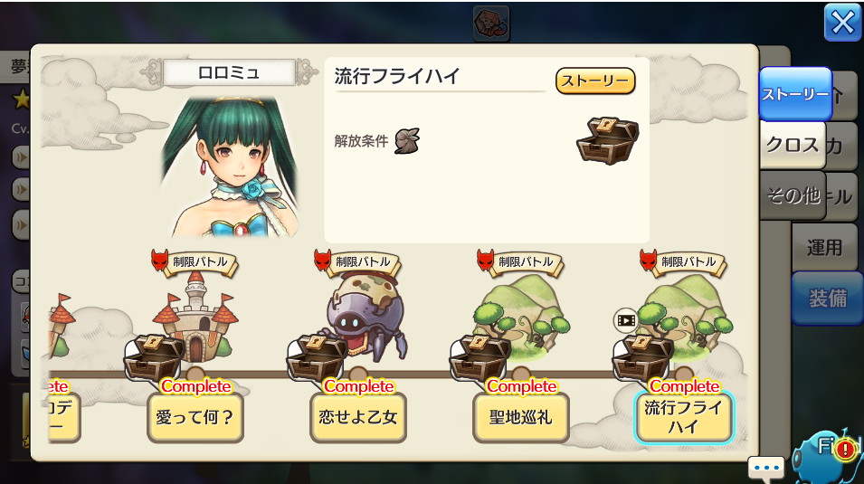 話進めていくと、今話題の 夢飛ロロミュ につながるストーリだ‼ と少し遅れて気が付いたわけです。何も考えずポチポチとストーリ進めたわけですよ。