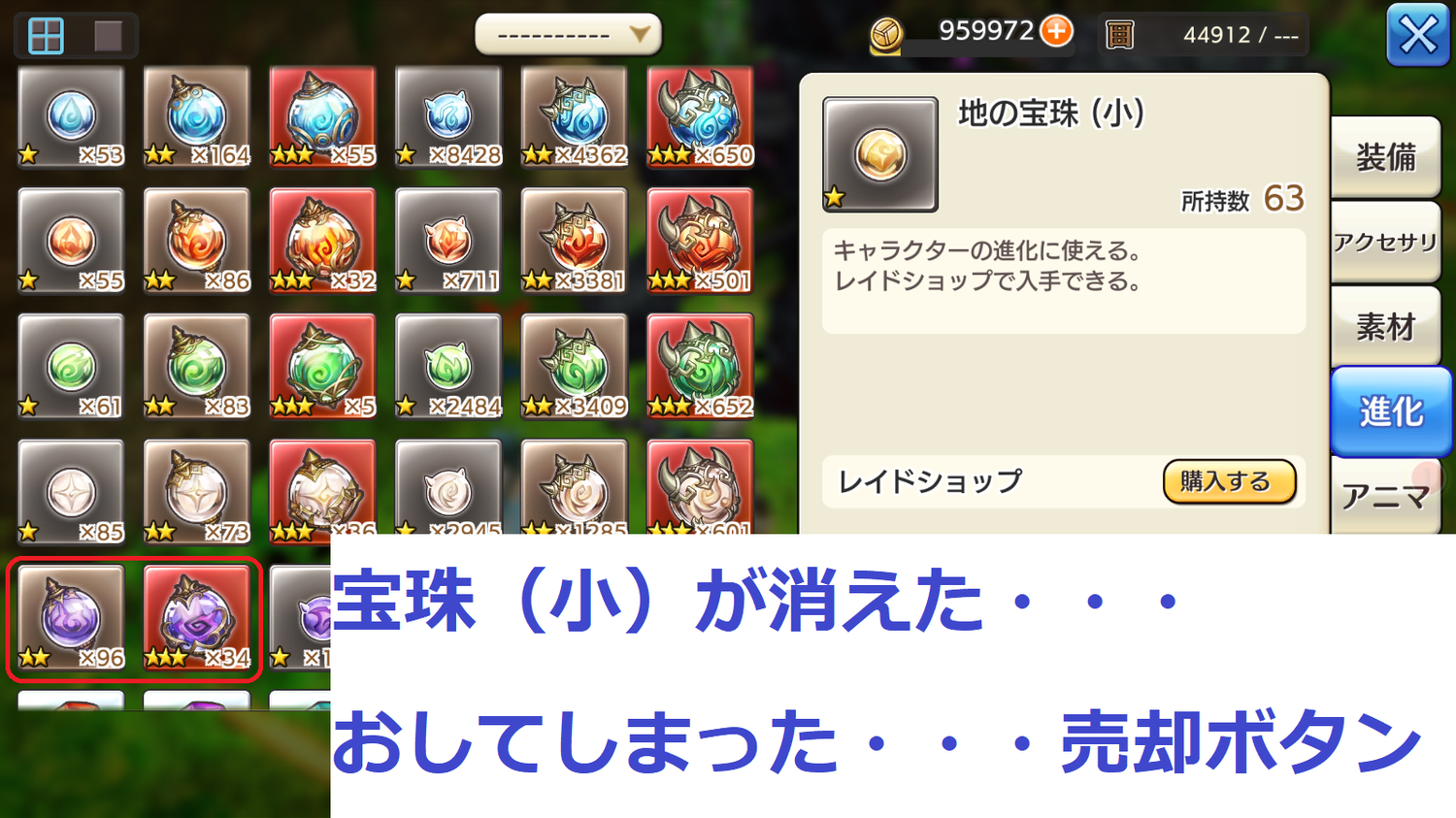 間違って闇宝珠の売却ボタンを押してしまったらしい涙(;・∀・)
