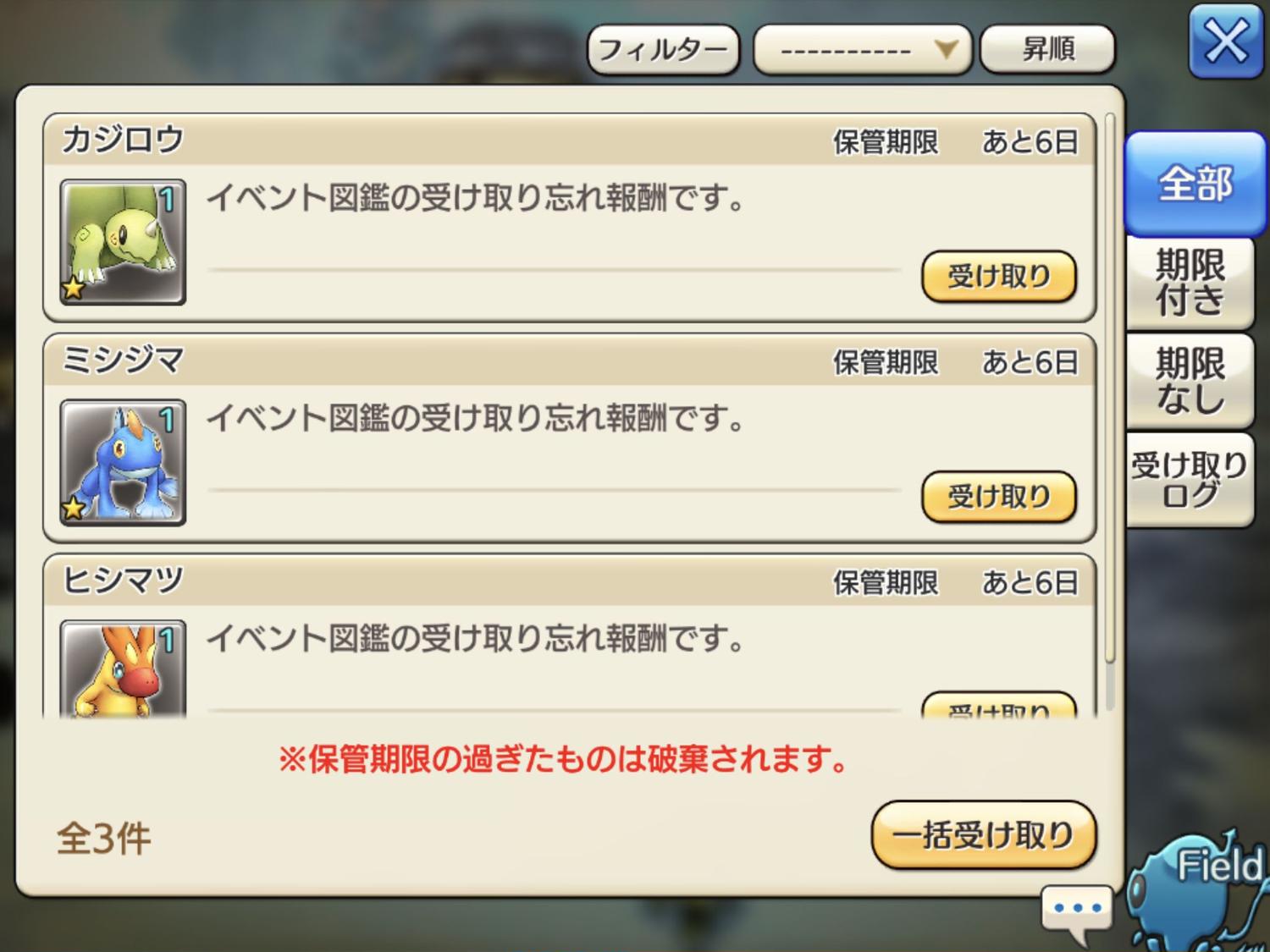 育成中のカジロウ、ミシジマ、ヒシマツには、必ず?鍵を掛けてロストしないように注意です。