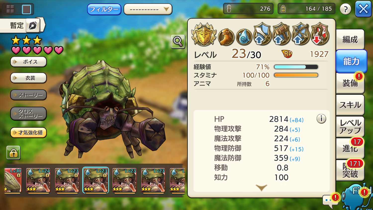 既に我がキャラバンには★1から選別したリクガメ(相変わらずBPトップ)がいますが、状況に応じて使い分けをしていければと思っています。