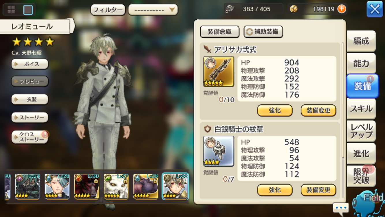 アルフレッドとレオは星5装備あって、星5進化も目前。