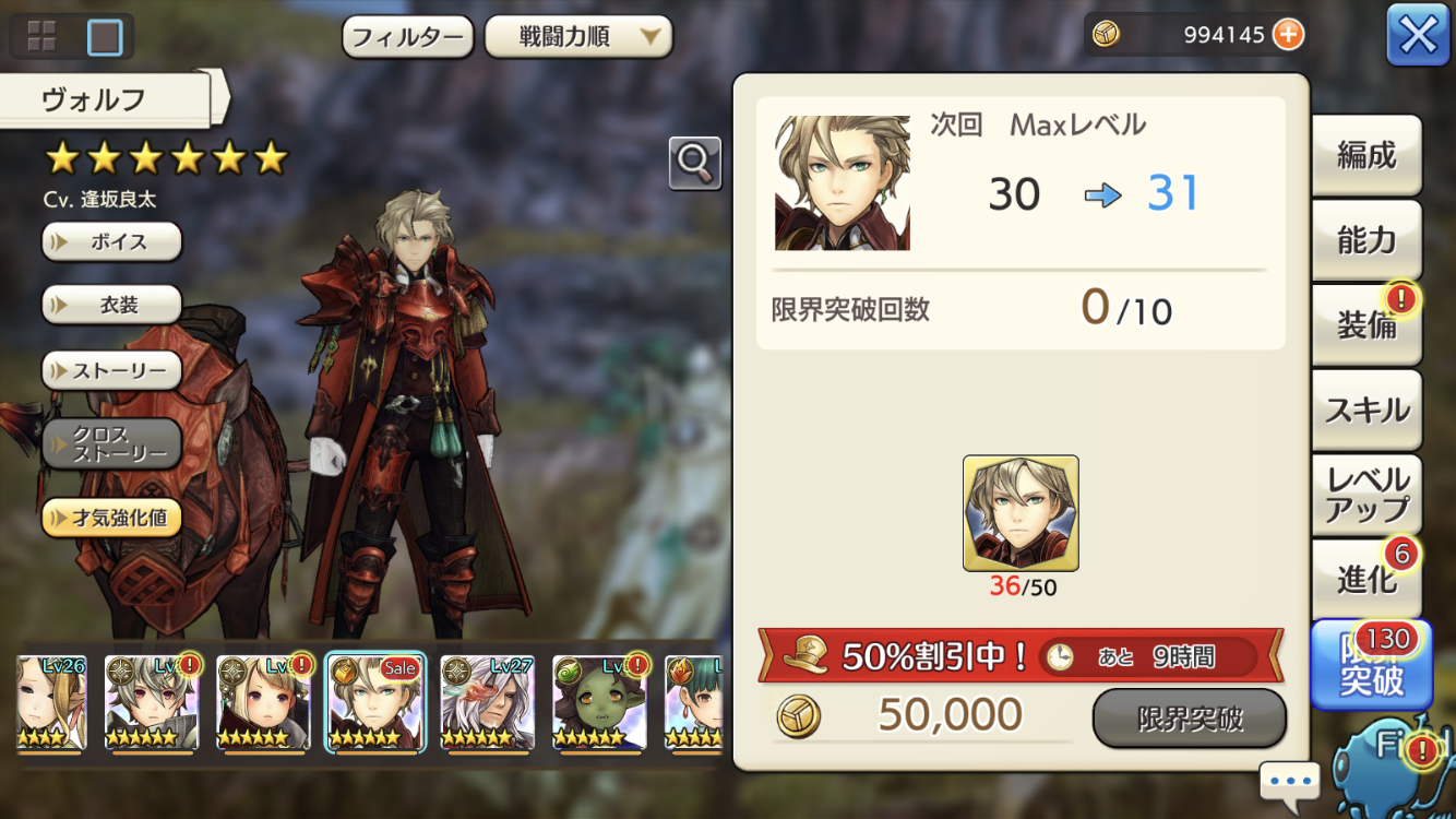 次はあのちっちゃい子かなーと思ってたら、まさかの先にリーダー!?と、ヴォルフでしたが、ここまできたらとりま回そうと(惰性で)回してみたらあと少しでアニマ解放やーってとこで、直引きしたおかげで、なんとリーダーだけ★6進化できましたー"(ノ*>∀<)ノ