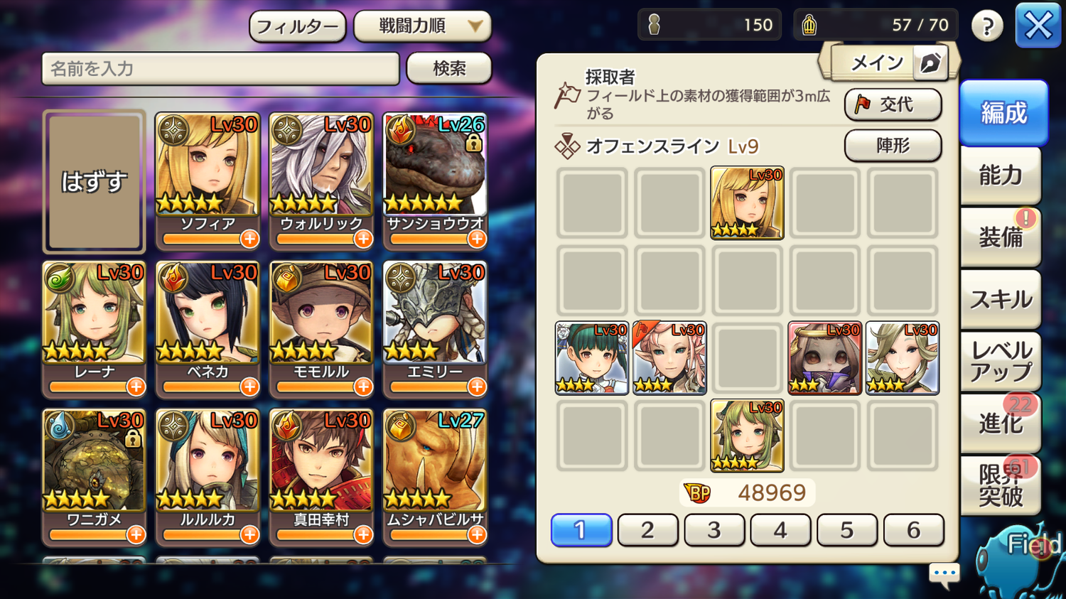 フィロメナ☆4: M☆5 S☆4 4/4/1/1/1/1 BP:5,870