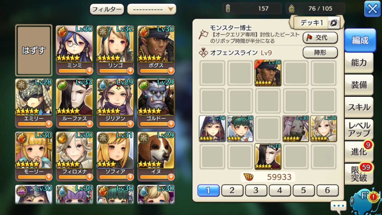 前列:☆5ボグスLv30 4/5 風属性カットLv4 ダメ減44%