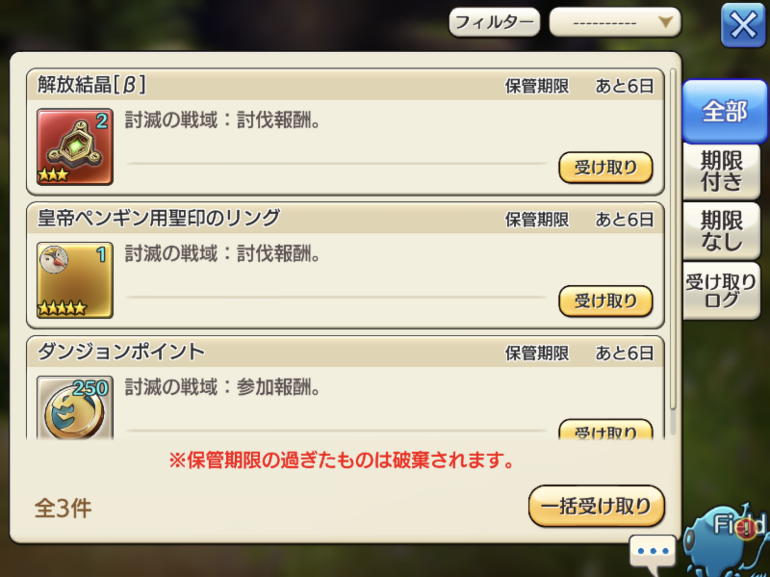 まだ出てないギルメンもいるので、申し訳ない気持ちで一杯ですが、コウテイ星5装備頂きました・:*+.\(( °ω° ))/.:+しかも星4持ってないサブなのでありがたい。