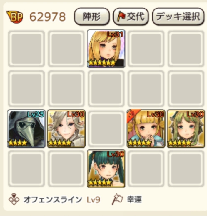 オフェンスラインの最後尾(ロロミュを配置してる箇所)は与ダメージが増えるポジションなのでウォルリックとかアタッカーを配置すると良いですよ~。
