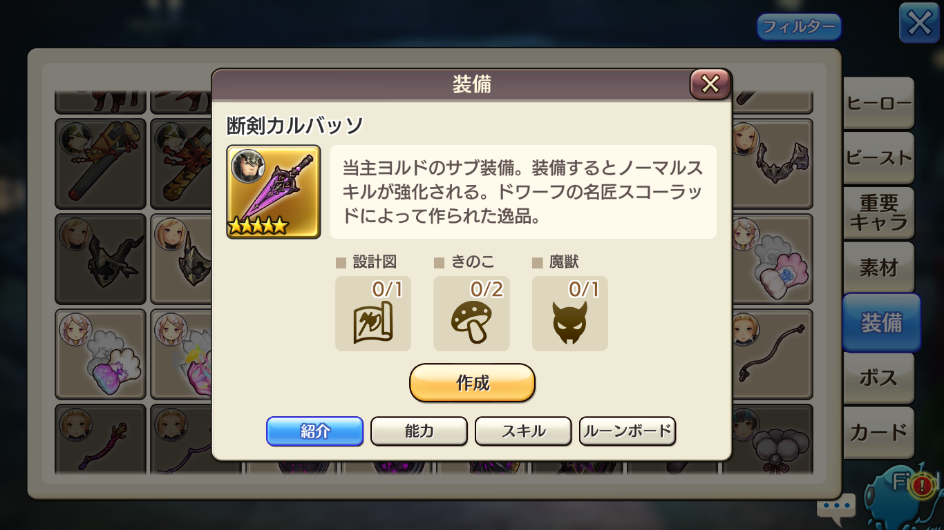 そういえばルヴレのカラスとミンミの黒猫って「使い魔」で合ってたっけ?と聞いてみたら、図鑑から未だ持ってない装備まで見られると教えてくれました。