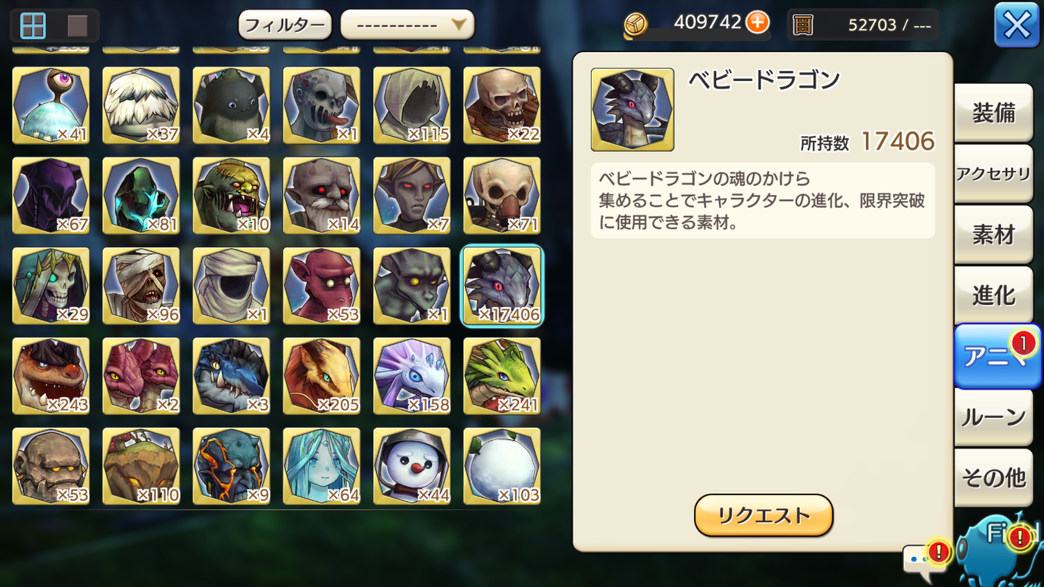 宝珠とアニマだけがどんどん貯まっております...