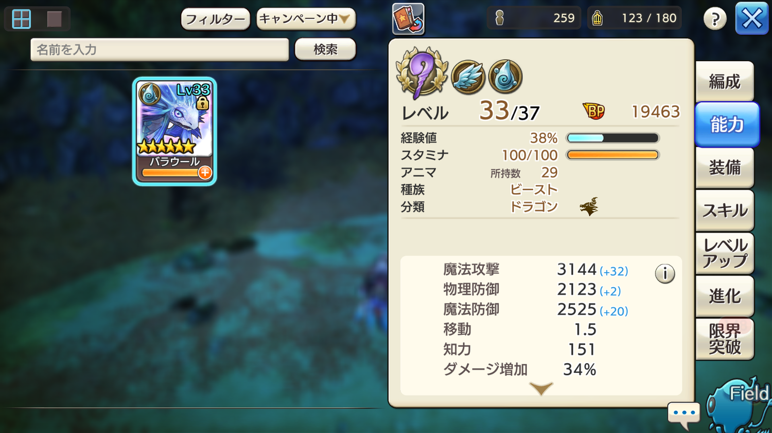 バラウールはCT長いので知力151とかにしてないと使いもんにならんかも。