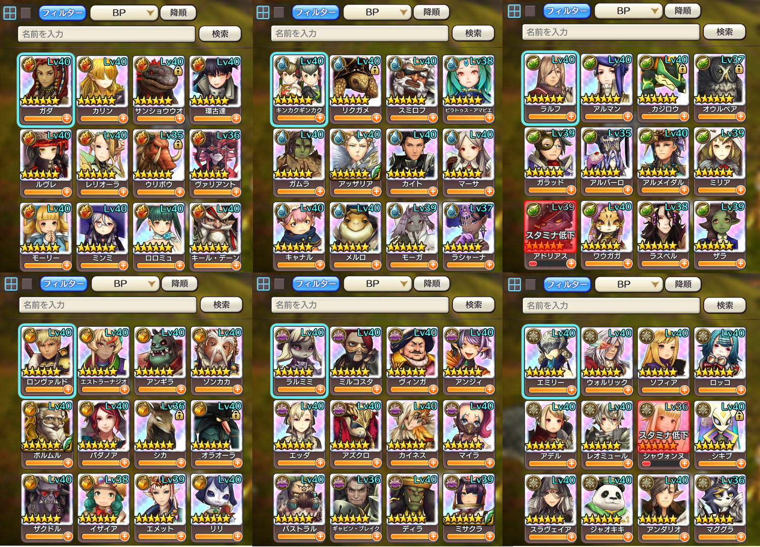 ・風=温めておいたリザ種族アニマでアルバーロ育成中。物理枠はアイリーンを地道にアニマ貯め途中。