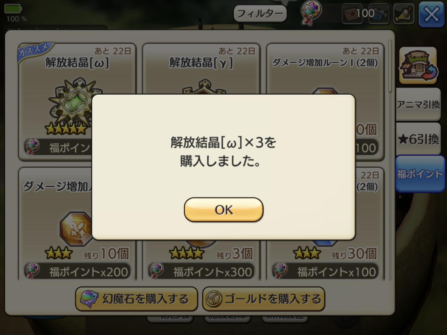 ベネカさんに貰った幻魔石は、500石ガチャx3に回して900福ポイントを入手。