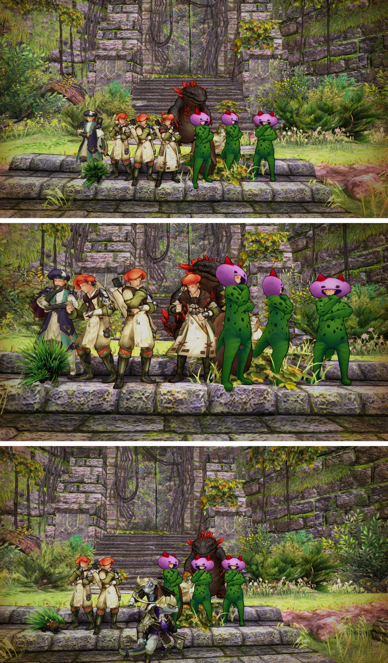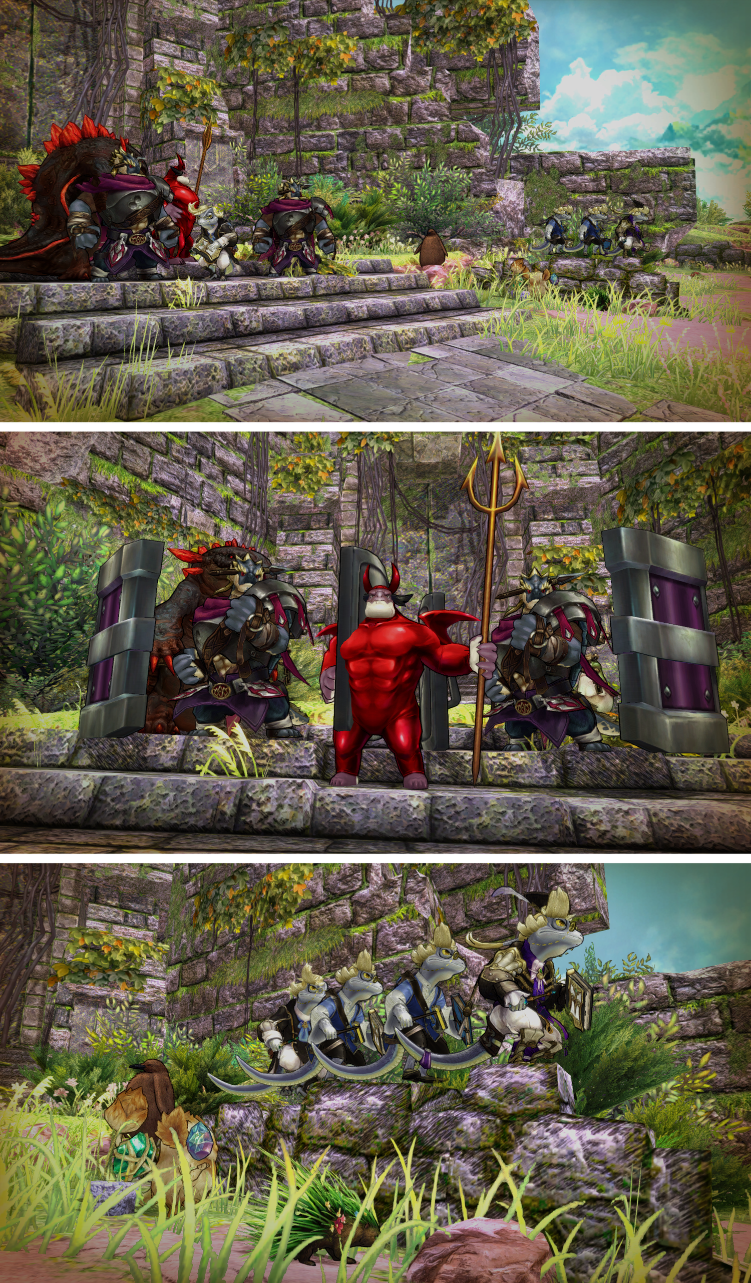 崩れかけた石垣にアリアロさんたちが並んでるw