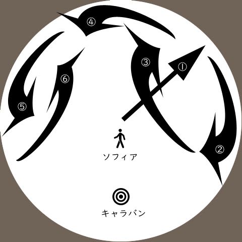 ロッコの動きを見ながら、矢印の番号順でソフィアを操作します。
