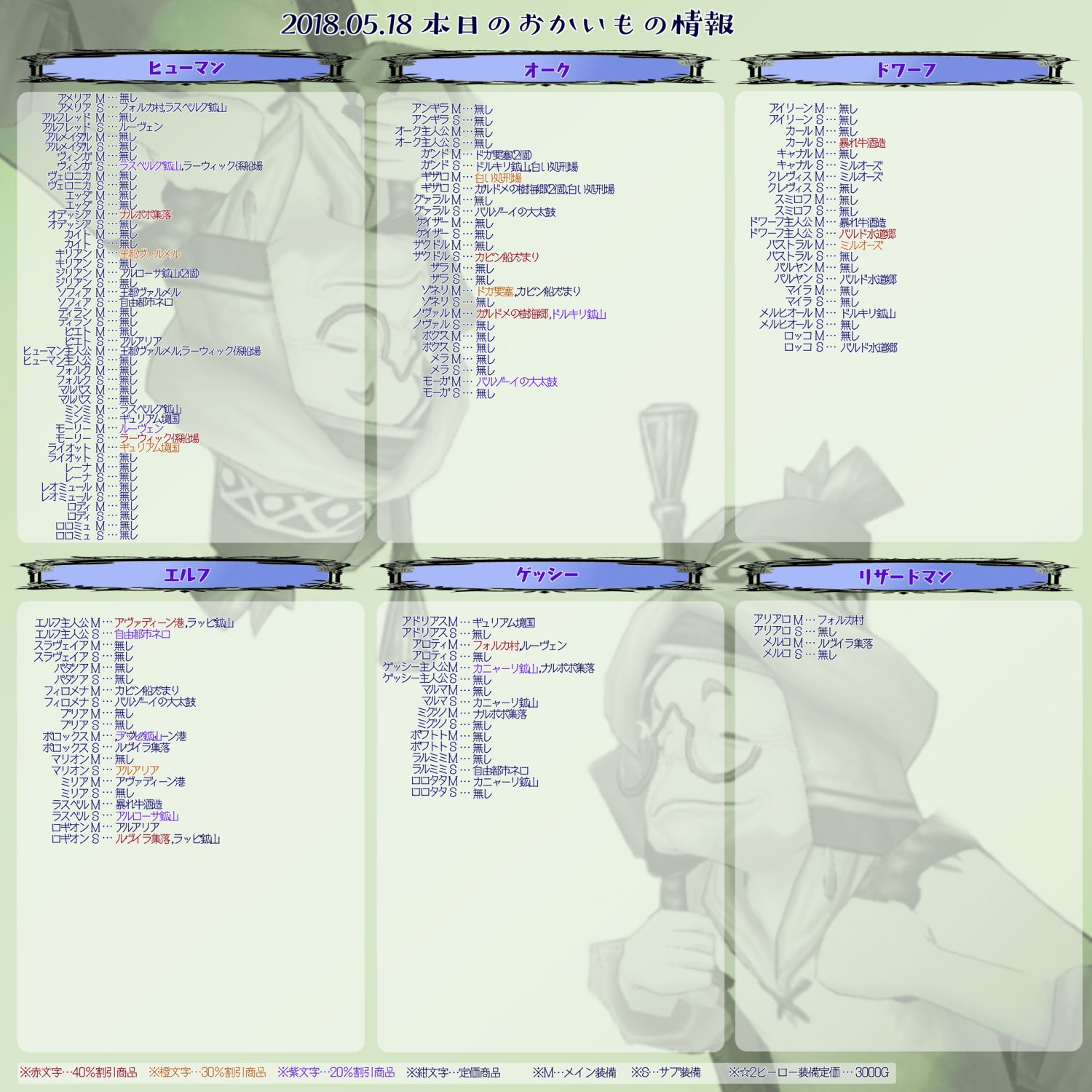 2018/05/18 12:15 公開 今日のおかいもの情報(※ドワーフ領上位エリアは未確認です) <<<覚醒ルーンはルヴイラ集落で販売中!!>>>今日はクマの帽子がいっぱい売ってます~*\(^o^)/* マーシャーク リンクをコピーしました 前の旅日誌 旅日誌一覧 次の旅日誌 コメント