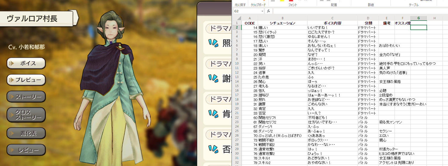 ギャラ経費をケチるためか、ゲストキャラ・NPCなどはとくに、使用されるだろうシチュエーションの種類に絞って収録されていて、まだ実装されていないけど、いずれ、この範囲で、こういうシチュエーションでストーリーイベントに登場するんだろうなぁ・・・などと、いやらしい方面からの予測ができたりして面白いです。