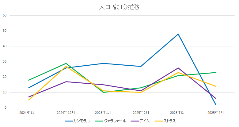 先月・先々月にクラッキングがありまして、カシモラルで正確な人口が出せなくなりましたので推定値です。