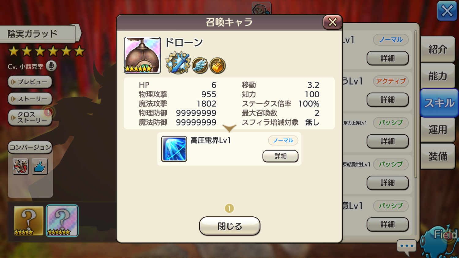 デュエルで使ってみた感触ではドローンが敵のエビスとか爆撃系とかで落とされてたように見えたりもしたんだけど、10スタック後に自動消滅だったかもしれず・・・。
