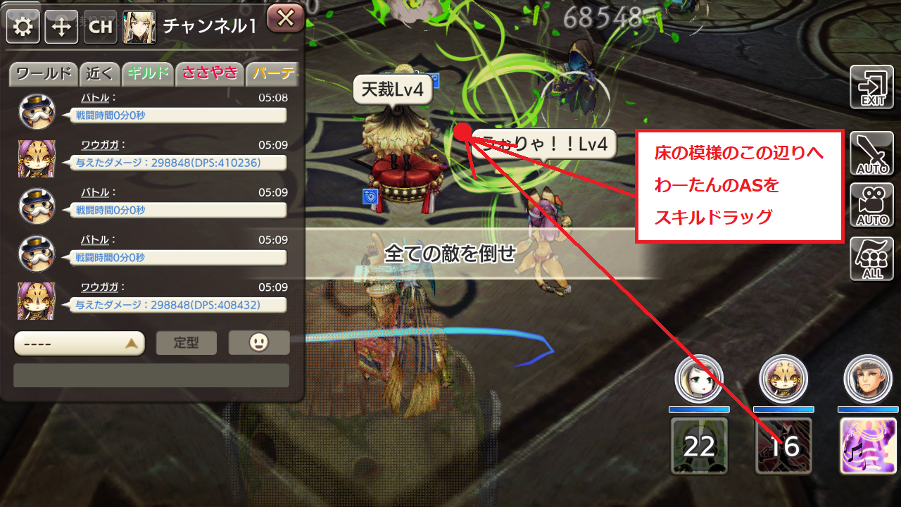 経験値ダンジョンだと床の模様を目安にAS撃てるので練習には最適。